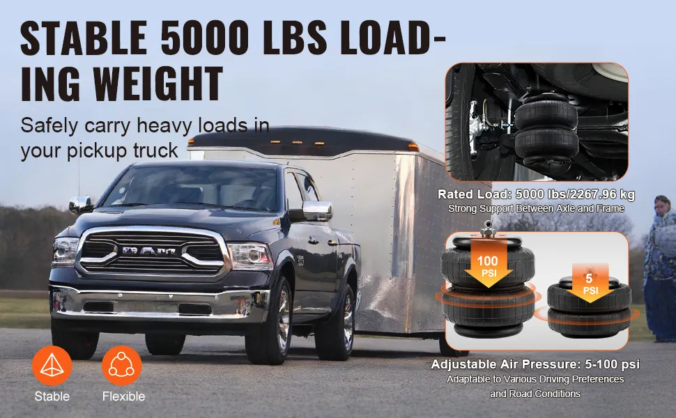 To niezbędny element w różnych warunkach jazdy. Zestaw zawieszenia pneumatycznego VEVOR może dostosować się do różnych sytuacji na drodze. Możesz regulować ciśnienie od 5 do 100 PSI w zależności od potrzeb, co czyni go idealnym do różnych terenów i obciążeń. Niezależnie od tego, czy jedziesz po gładkich autostradach, czy po nierównych trasach terenowych, ten zestaw sobie z tym poradzi. Regulacja PSI zapewnia optymalny komfort jazdy i stabilność pojazdu. Pomaga również zapobiegać kontaktowi osi i ramy z powodu nadmiernych obciążeń; ta funkcja sprawia, że jazda jest bezpieczniejsza i przyjemniejsza.