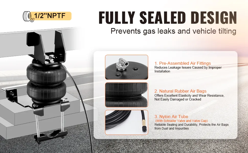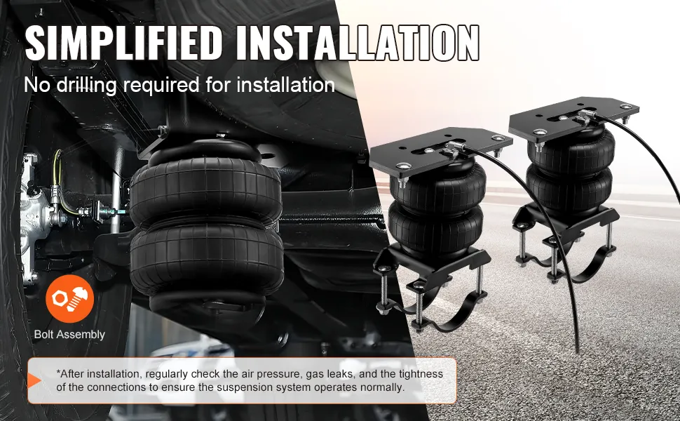 Zestaw zawieszenia pneumatycznego VEVOR jest bardzo prosty w montażu. Zestaw zawieszenia dodge ram 3500 ma konstrukcję bez wiercenia, co upraszcza proces. Postępuj zgodnie z instrukcjami, a szybko go skonfigurujesz. Ten zestaw jest kompatybilny z modelami dodge ram 2500 z zawieszeniem pneumatycznym 4WD z lat 2003–2013 i dodge RAM 3500-4WD z lat 2003–2018. Montaż przykręcany zapewnia bezpieczne dopasowanie bez żadnych modyfikacji. Ta wygoda sprawia, że jest on dostępny dla większości kierowców. Po instalacji regularnie sprawdzaj ciśnienie powietrza. Sprawdź, czy nie ma wycieków gazu i czy połączenia są bezpieczne, aby zapewnić optymalną wydajność.
