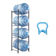 VEVOR 4-poziomowy uchwyt na dzbanek na wodę, 5-galonowy uchwyt na butelkę na wodę, jednopoziomowy żeliwny stojak na 4 butelki, wytrzymały stojak na dzbanek na wodę do kuchni, biura, salonu, czarny