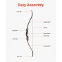 Zestaw łuku refleksyjnego i strzał VEVOR (1524 mm) Drewniane łuki rozkładane, ergonomiczny zestaw łuku refleksyjnego dla praworęcznych, długi łuk do ćwiczeń strzeleckich na świeżym powietrzu, dla początkujących i zaawansowanych, 15,88 kg
