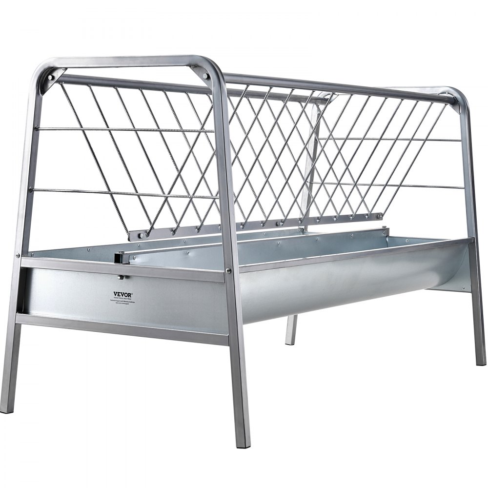 VEVOR Podajnik na siano dla zwierząt gospodarskich, podajnik 2 w 1 na ziarno i siano, pojemność 80 galonów, podajnik na siano dla kóz o długości 1471 mm, stalowy pojemnik na ziarno i siano do obór dla owiec