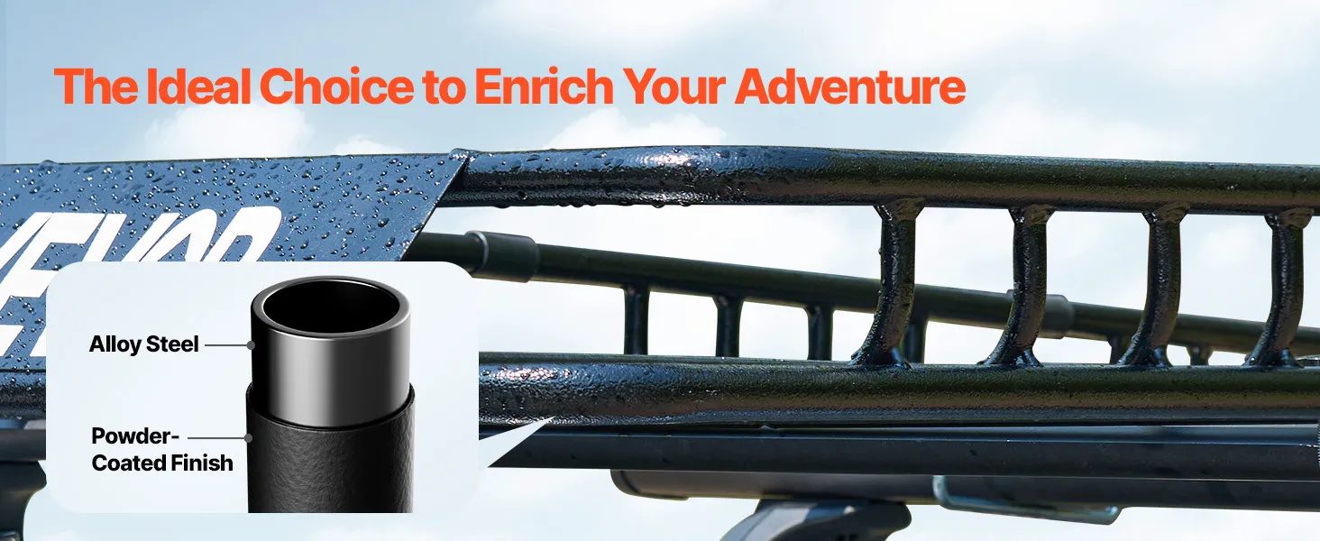 Trwały i odporny na warunki atmosferyczne: Ten bagażnik dachowy jest wykonany z wytrzymałej stali stopowej i zaprojektowany tak, aby wytrzymać działanie czynników atmosferycznych bez odkształcania się. Malowane proszkowo wykończenie zapewnia doskonałą odporność na korozję i gwarantuje długowieczność w trudnych warunkach pogodowych, takich jak intensywne słońce, deszcz, śnieg lub kurz.