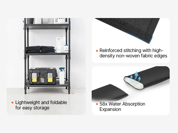 Lekka i wielokrotnego użytku: Łatwa w przechowywaniu – wystarczy wysuszyć na powietrzu po użyciu. Nasza bariera przeciwpowodziowa oszczędza miejsce i wysiłek w porównaniu z ciężkimi workami z piaskiem.