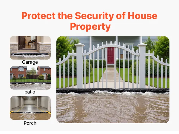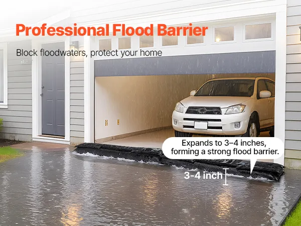 Szybkie rozszerzanie i ochrona: Nasza bariera przeciwpowodziowa może szybko rozszerzyć się do 76,20–101,6 mm (3–4 cali) po aktywacji, tworząc wytrzymałą i niezawodną barierę przeciwpowodziową, która chroni Twój dom i nieruchomość.