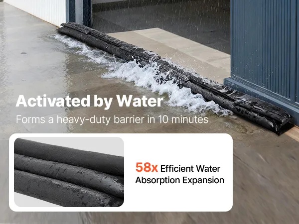 Szybkie i łatwe rozłożenie: wystarczy rozłożyć, aktywować wodą, a bariera wodna rozszerzy się w ciągu 10 minut. Idealna do awaryjnej ochrony przed burzami.