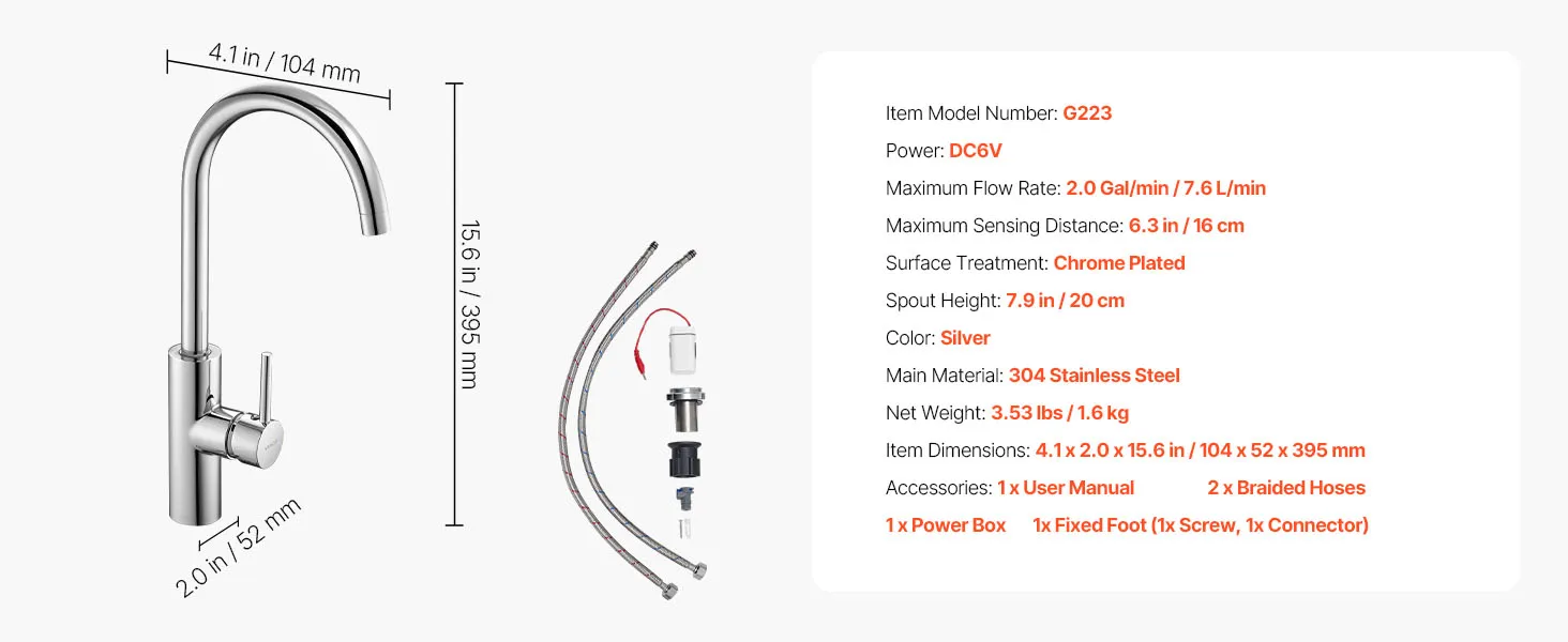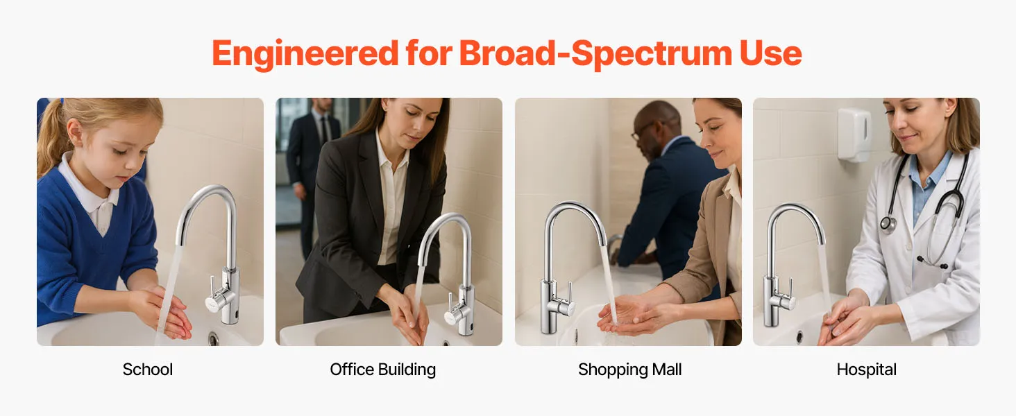 Wysoka kompatybilność: Ta bezdotykowa bateria umywalkowa ma standardowy rozmiar montażowy, dzięki czemu jest kompatybilna z większością popularnych marek zlewozmywaków. Niezależnie od tego, czy modernizujesz, czy wymieniasz armaturę, łatwo integruje się z systemem i zapewnia bezproblemową instalację.