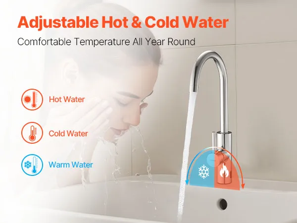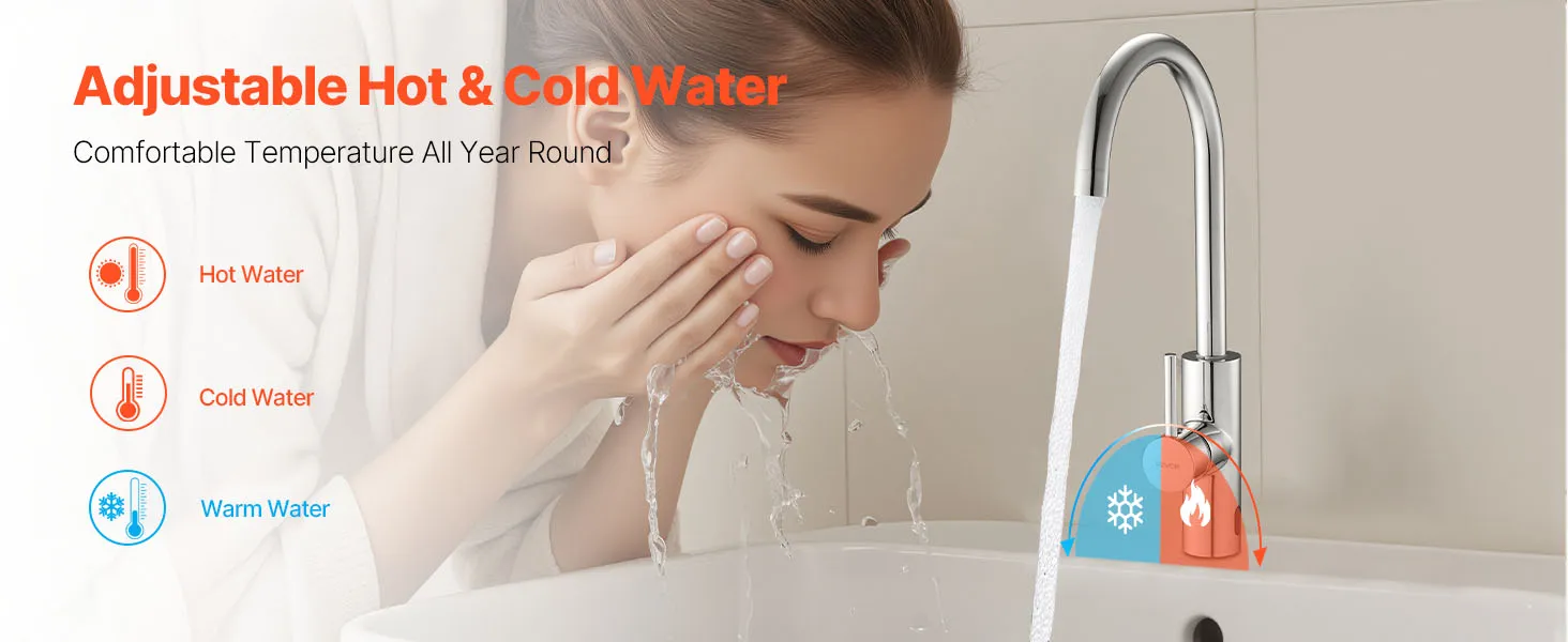 Regulowana temperatura wody: Ustaw żądaną temperaturę wody za pomocą zaworu mieszającego pod zlewem. Dzięki temu możesz łatwo przełączać się między zimną a ciepłą wodą, zapewniając spersonalizowane i komfortowe mycie.