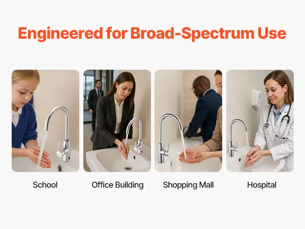 Ta komercyjna bateria umywalkowa charakteryzuje się eleganckim, nowoczesnym wykończeniem i nadaje się do różnych zastosowań, m.in. domów, biur, hoteli, restauracji i placówek medycznych.