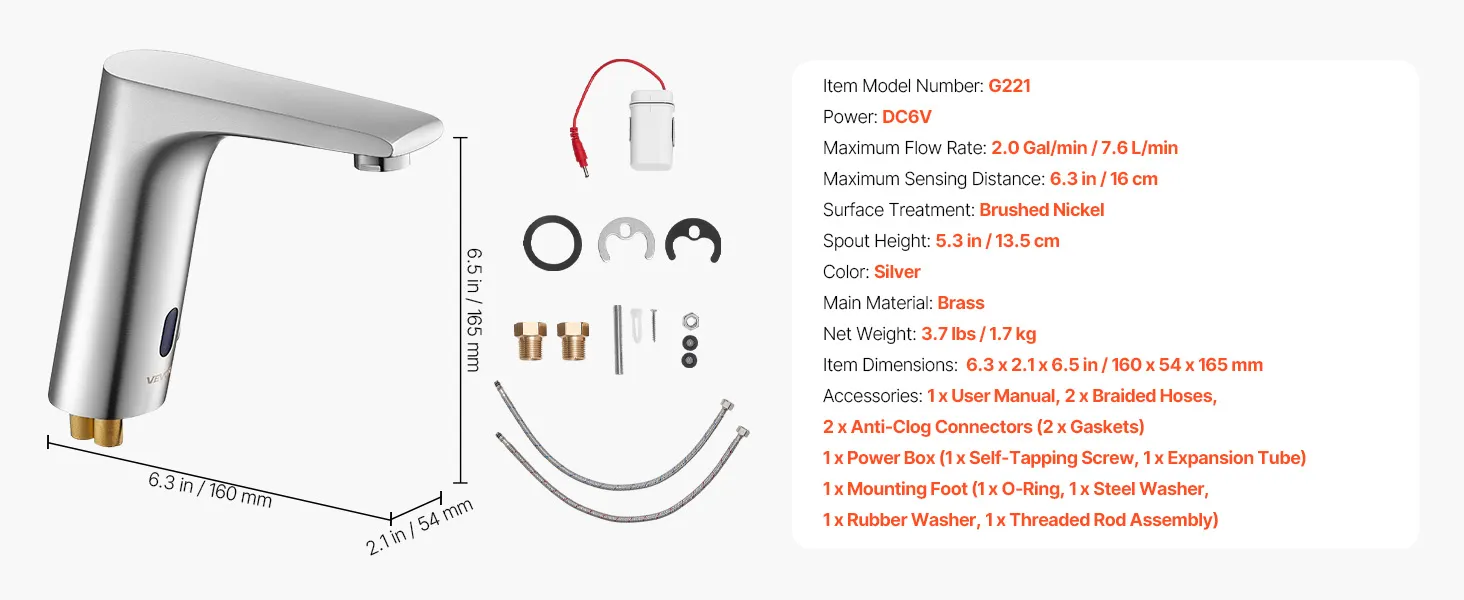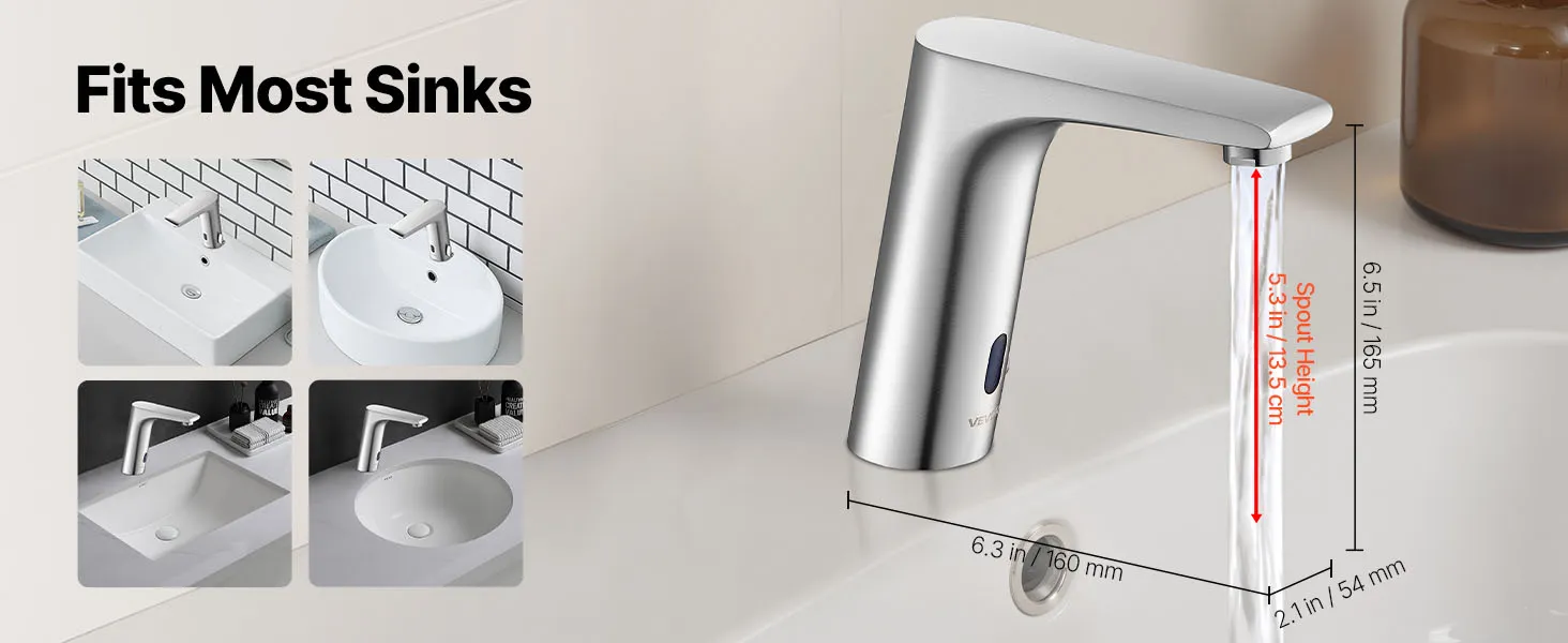 Wysoka kompatybilność: Ta bateria bezdotykowa ma standardowy rozmiar montażowy, dzięki czemu jest kompatybilna z większością standardowych zlewozmywaków. Niezależnie od tego, czy modernizujesz, czy wymieniasz armaturę, łatwo integruje się z systemem i zapewnia bezproblemową instalację.
