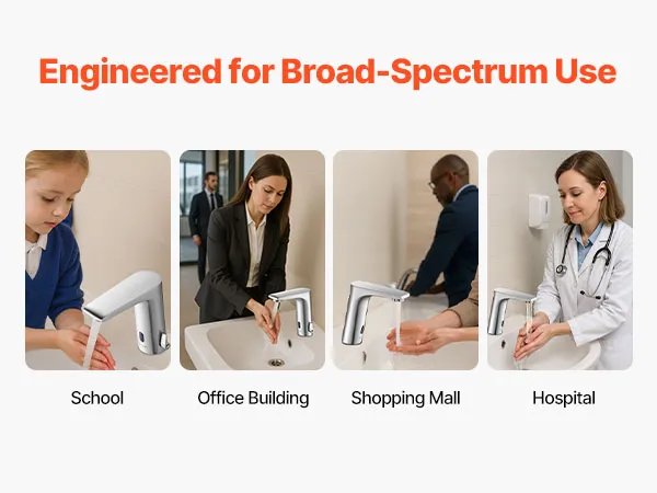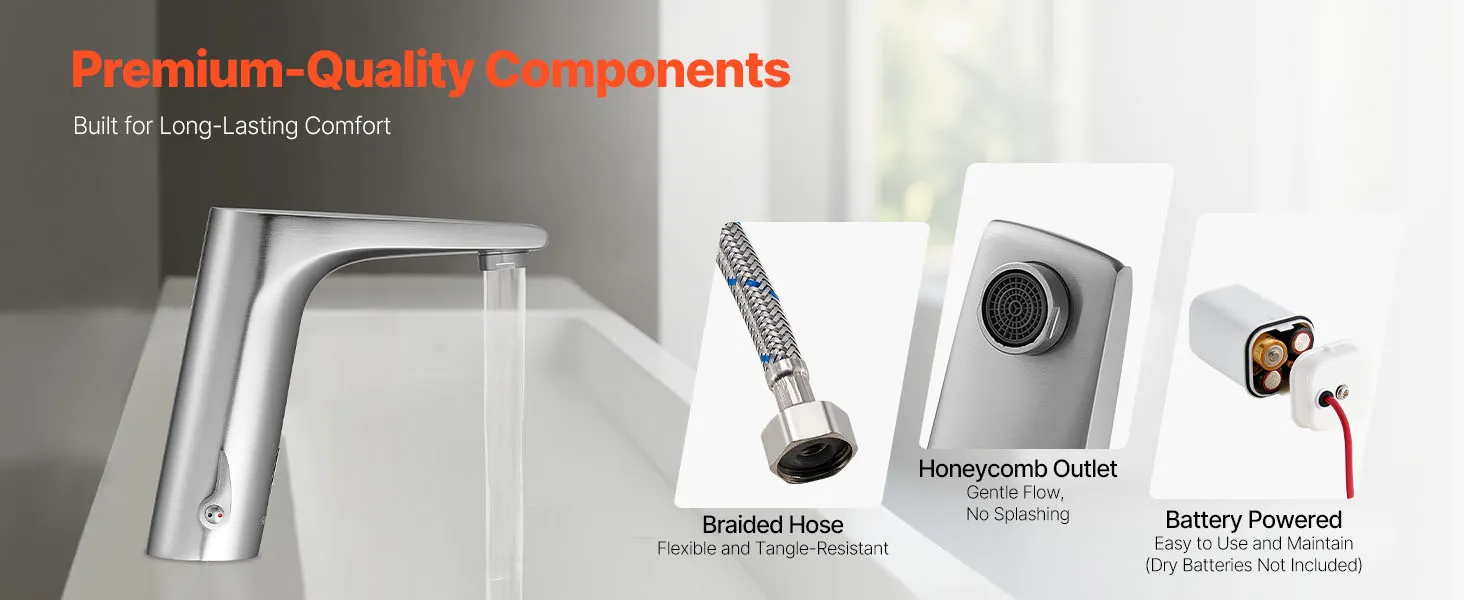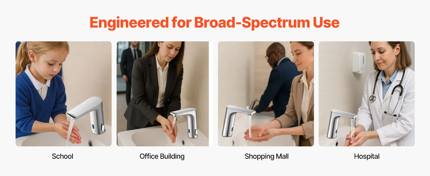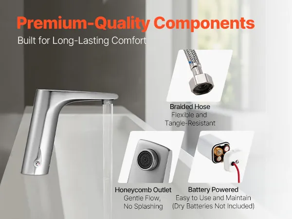 Wytrzymały i odporny na rdzę: Ta bezdotykowa bateria sensoryczna jest wykonana z mosiądzu i oferuje wysoką wodoodporność. Utrzymuje jakość wody, jest odporna na zużycie i uszkodzenia spowodowane częstym użytkowaniem oraz działa niezawodnie nawet w wilgotnych pomieszczeniach przez dłuższy czas.