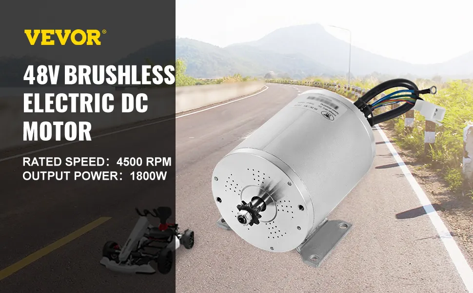 Ten bezszczotkowy silnik MY1020 1800 W 48 V DC jest dostarczany ze wspornikiem i 11-zębową zębatką T8F. Ten bezszczotkowy silnik idealnie nadaje się do skutera elektrycznego, mini roweru lub gokarta, a także współpracuje z silnikami każdej innej marki o podobnych specyfikacjach.