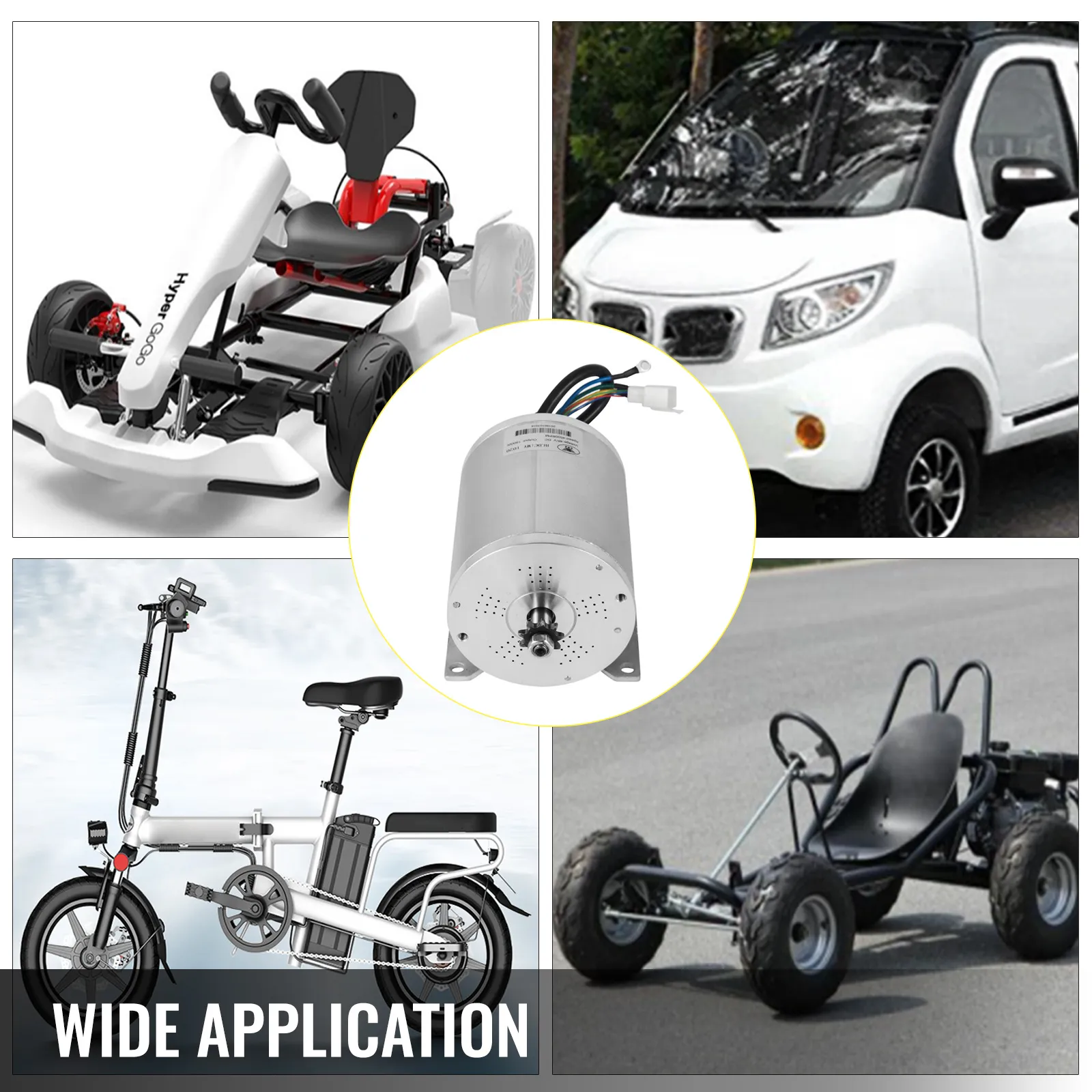 Ten wysokowydajny silnik bezszczotkowy idealnie nadaje się do skuterów elektrycznych, rowerów, gokartów, rowerów elektrycznych, motocykli, hulajnóg elektrycznych, minirowerów i rowerów kieszonkowych itp.