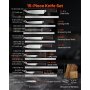 Zestaw noży kuchennych VEVOR z blokiem na noże (drewno) i ostrzałką, 15-częściowy zestaw noży, ostre noże ze stali nierdzewnej o wysokiej zawartości węgla, sztućce kuchenne z ergonomicznym uchwytem, do użytku domowego