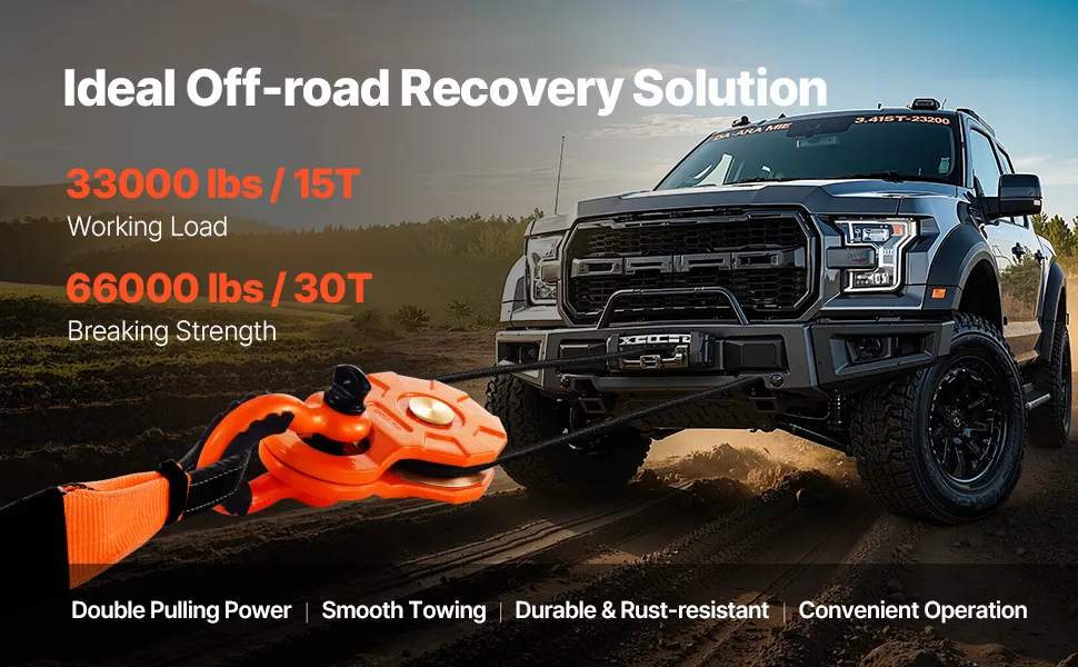 Wytrzymałość: Dzięki nominalnemu obciążeniu roboczemu 33 000 funtów/15 ton i wytrzymałości na zerwanie 66 000 funtów/30 ton, ten blok holowniczy idealnie nadaje się do holowania ciężkich pojazdów. Niezależnie od tego, czy jesteś nowicjuszem w jeździe terenowej, czy miłośnikiem przygód na świeżym powietrzu, ten blok z łatwością pomoże Ci w holowaniu ciężarówek, traktorów, quadów i pojazdów UTV w każdej sytuacji.
