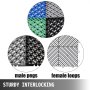 Płytki VEVOR do łączenia ze sobą, z męskimi kołkami i żeńskimi pętelkami w różnych kolorach.