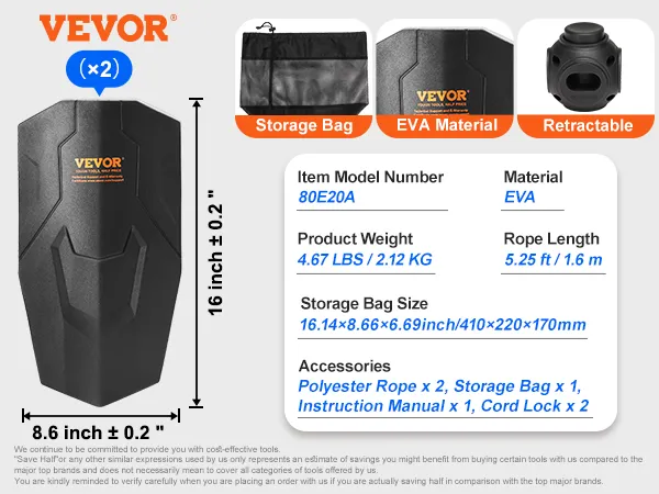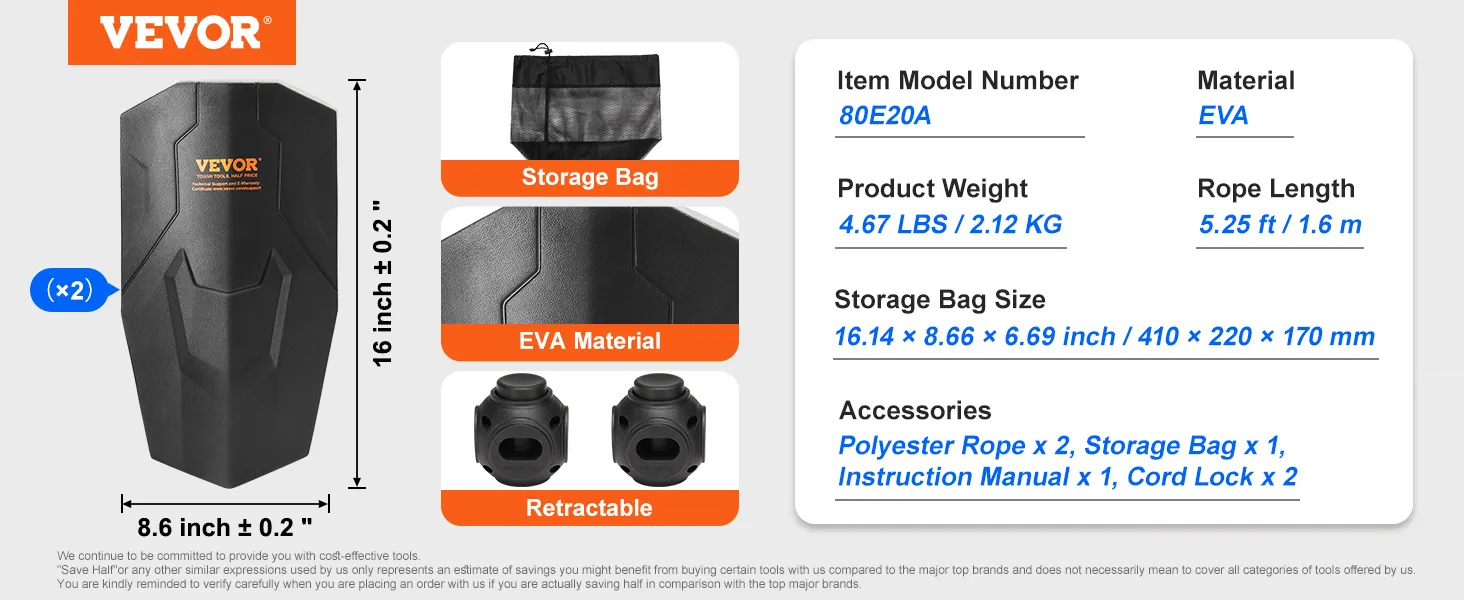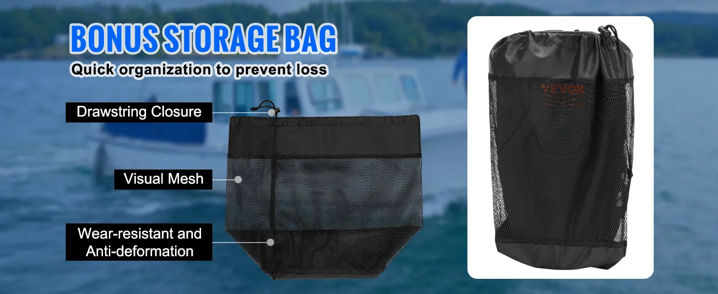 Bardzo łatwo napompować błotniki łodzi VEVOR za pomocą dołączonej pompki ręcznej. Pompka szybko napełnia zderzaki powietrzem. Konserwacja jest prosta: upewnij się, że błotniki dobrze trzymają powietrze. Ta łatwość użytkowania jest szczególnie korzystna dla osób, które regularnie korzystają ze swoich łodzi. Możesz szybko rozłożyć i spakować błotniki, oszczędzając cenny czas. Dołączona torba do przechowywania pomaga utrzymać je w porządku i chronić, gdy nie są używane.