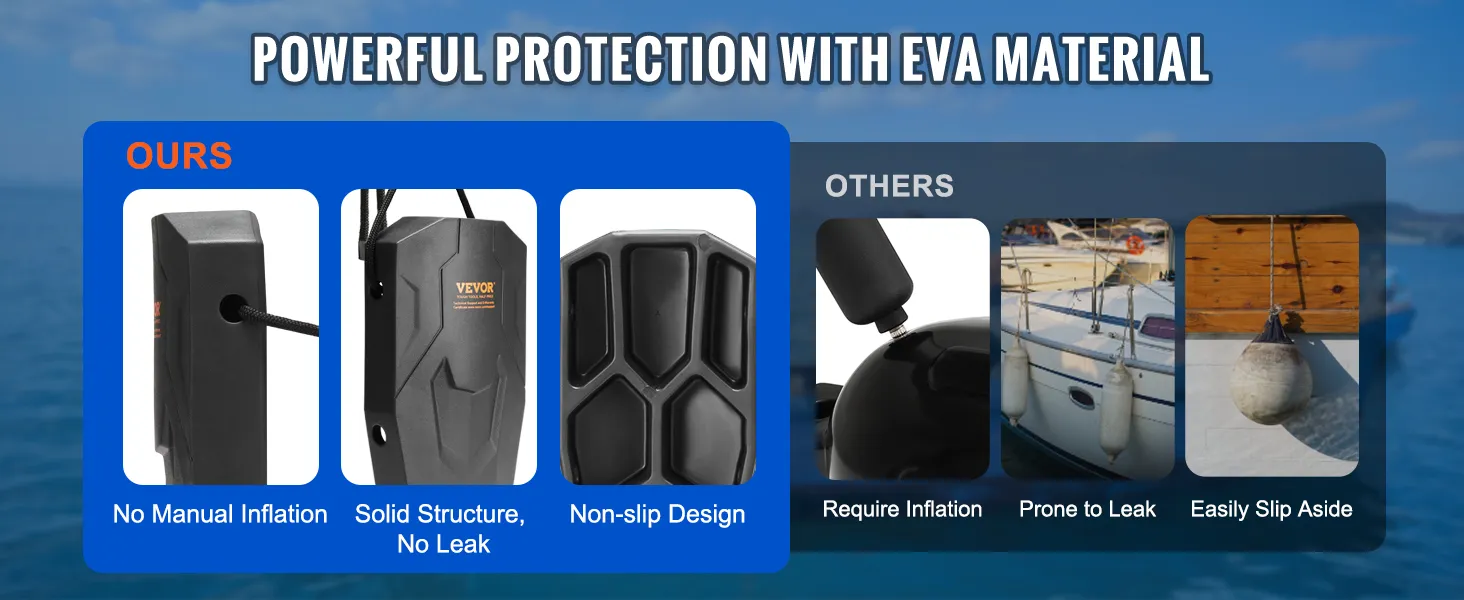 Te odbojniki do łodzi są wykonane z wytrzymałej gumy. Zapewnia to trwałość. Materiał jest wystarczająco wytrzymały, aby wytrzymać trudne warunki morskie. Pianka EVA jest gruba, zapewniając doskonałą ochronę łodzi. Ta trwałość oznacza, że możesz zaufać tym odbojnikom do łodzi podczas długotrwałego użytkowania. Zmniejszasz potrzebę częstych wymian. Inwestowanie w tego typu błotniki oznacza inwestowanie w jakość i trwałość.
