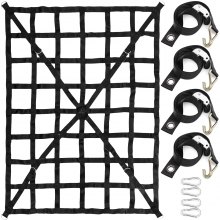 Siatka ładunkowa VEVOR, 96 x 82 cale, wytrzymała, na skrzynię ładunkową samochodu ciężarowego, z 4 regulowanymi paskami z karabińczykami i gumowanymi haczykami, trwała, odpowiednia do samochodów dostawczych, jeepów, ciężarówek, SUV-ów i łodzi (czarna)