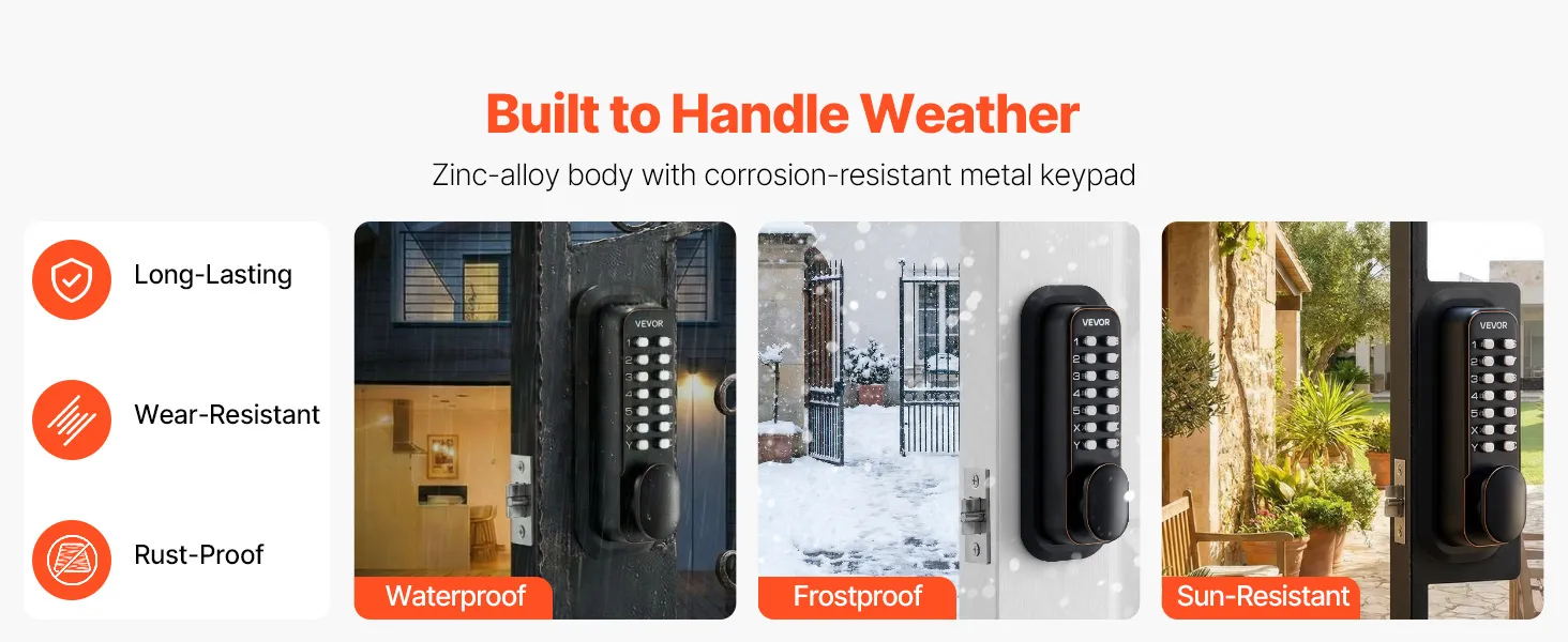 • Zaprojektowany do codziennego użytku: Dzięki wytrzymałej obudowie ze stopu cynku z powłoką odporną na rdzę, ten mechaniczny zamek z klawiaturą jest odporny na deszcz i słońce oraz wytrzymuje częste użytkowanie. Idealnie nadaje się do drzwi wejściowych, bram ogrodowych, garaży oraz wszystkich wejść wewnętrznych i zewnętrznych.