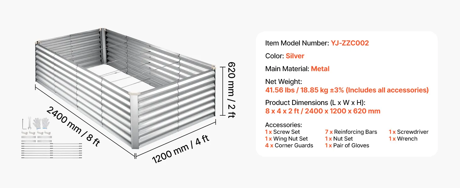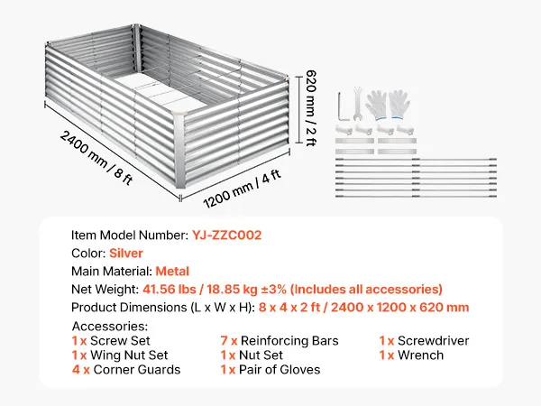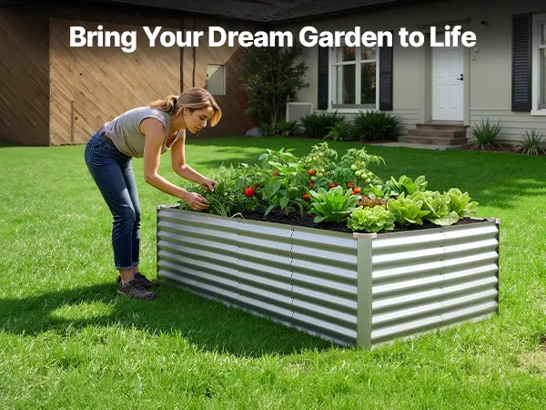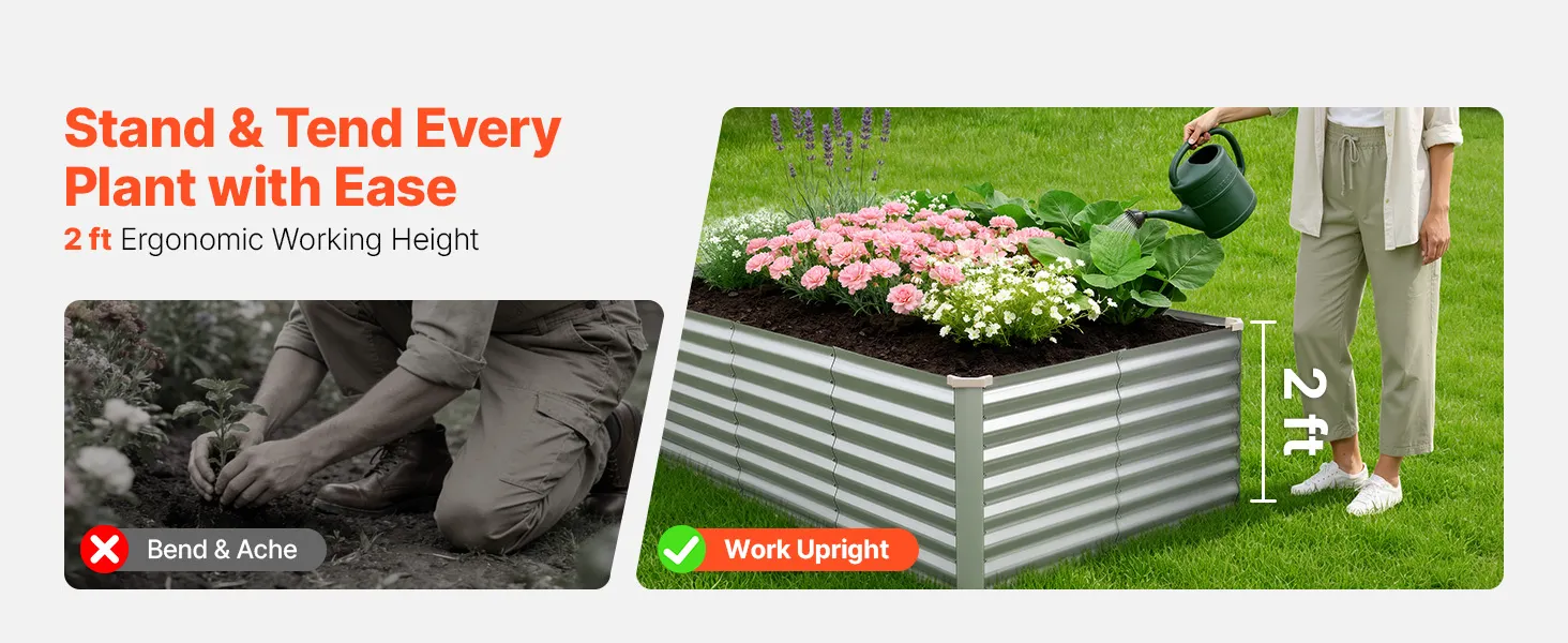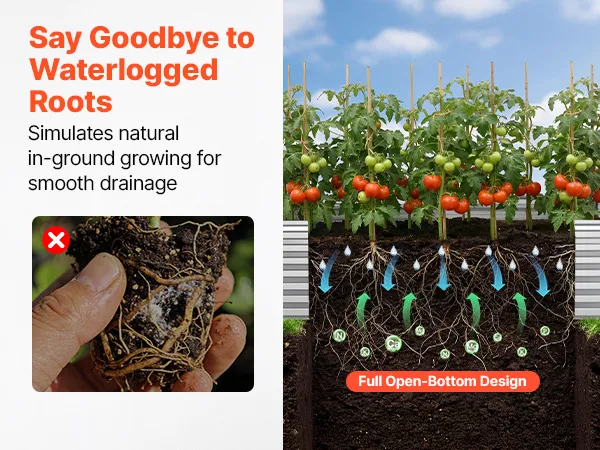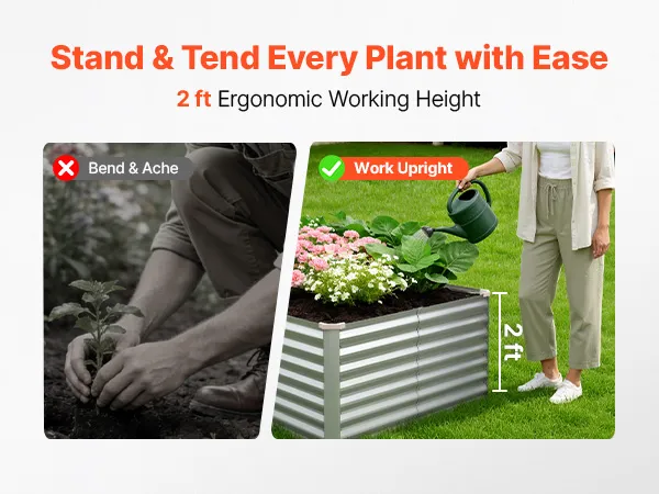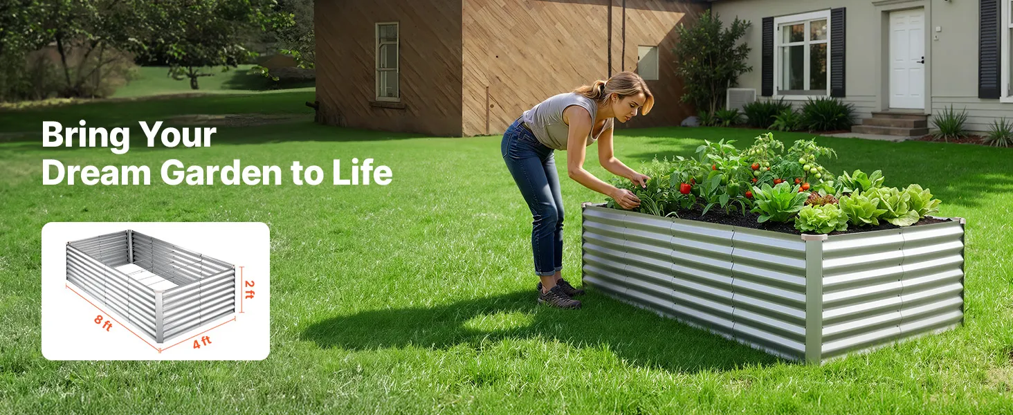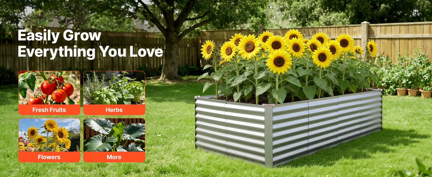 Dzięki solidnej konstrukcji z paneli aluminiowo-cynkowych i wzmocnionej konstrukcji, ta podniesiona grządka nadaje się do długotrwałego użytkowania na zewnątrz. Otwarta konstrukcja podstawy zapewnia szybki drenaż, pozwalając łatwo stworzyć ogród marzeń.