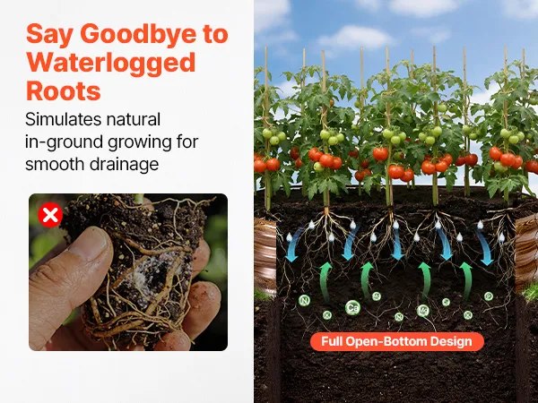• Bardzo duża powierzchnia do sadzenia: Ta podwyższona grządka o wymiarach 120 x 60 x 30 cm (4 x 2 x 1 stopa) oferuje dużo miejsca na glebę i odpowiednią głębokość. Korzenie mają wystarczająco dużo miejsca, aby rozprzestrzeniać się zarówno w pionie, jak i w poziomie, co sprzyja zdrowemu wzrostowi warzyw i kwiatów.