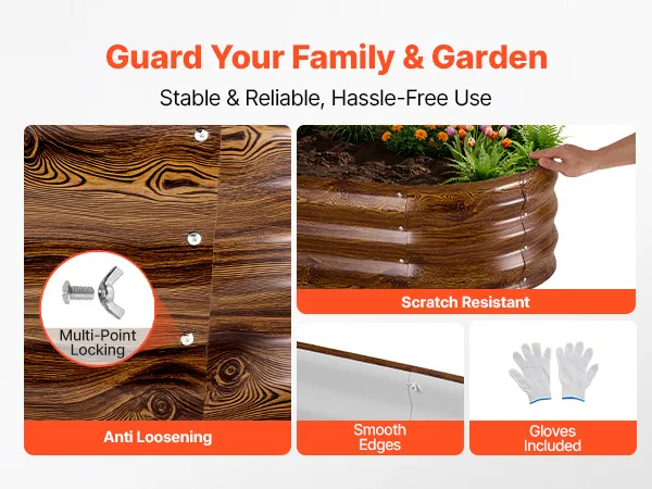 Ta podwyższona grządka ogrodowa ma gładkie, zaokrąglone krawędzie, co zapobiega skaleczeniom i zadrapaniom podczas montażu i codziennego użytkowania.