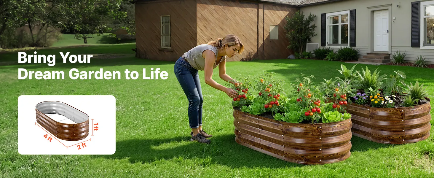 VEVOR Metalowa podniesiona grządka ogrodowa, zestaw 2 szt., 120 x 60 x 30 cm, owalna grządka ogrodowa, zestaw doniczek ogrodowych, grządka warzywna z rękawiczkami, grządka bez dna, grządka do kwiatów i warzyw VEVOR Metalowa podniesiona grządka ogrodowa, zestaw 2 szt., 120 x 60 x 30 cm, owalna grządka ogrodowa, zestaw doniczek ogrodowych, grządka warzywna z rękawiczkami, grządka bez dna, grządka do kwiatów i warzyw