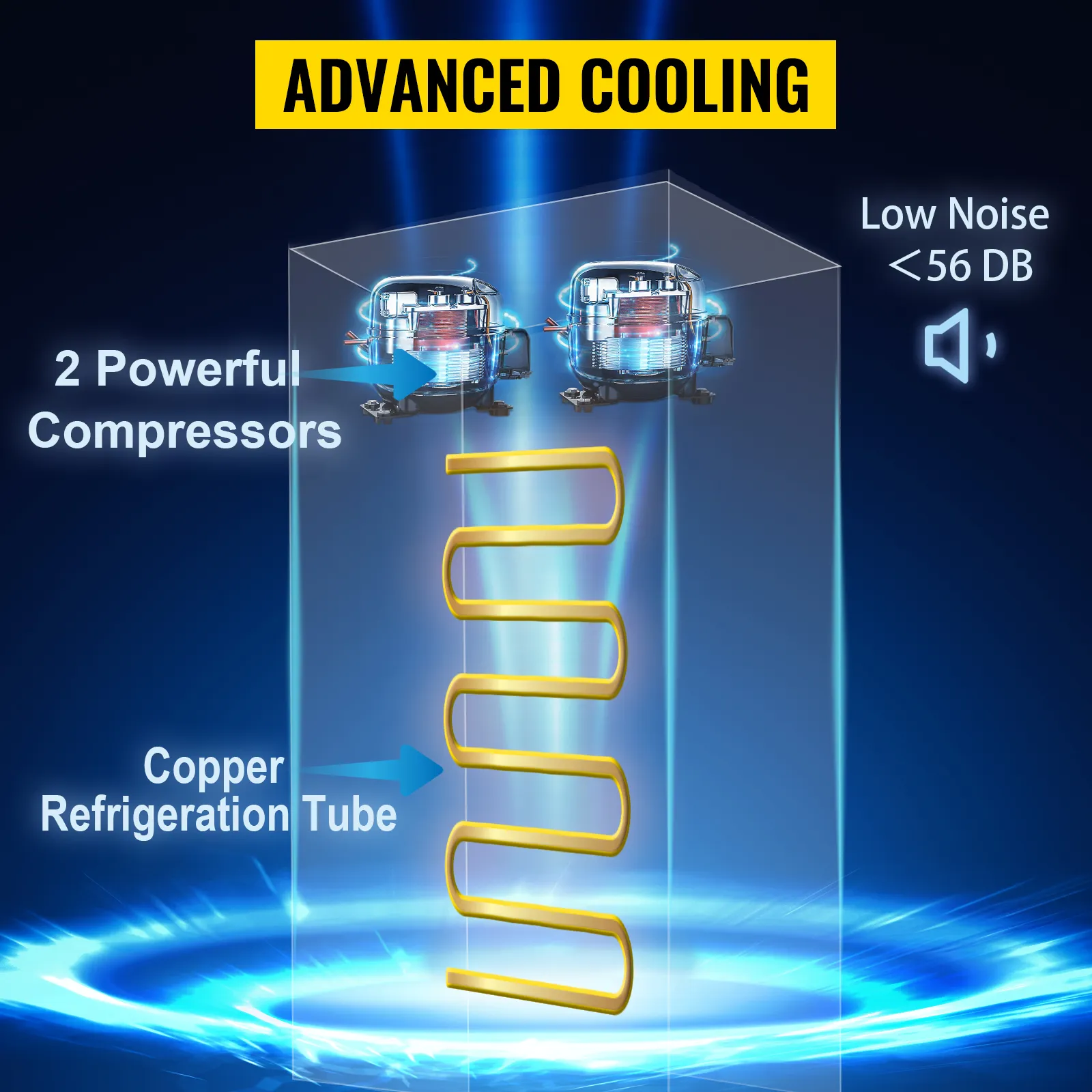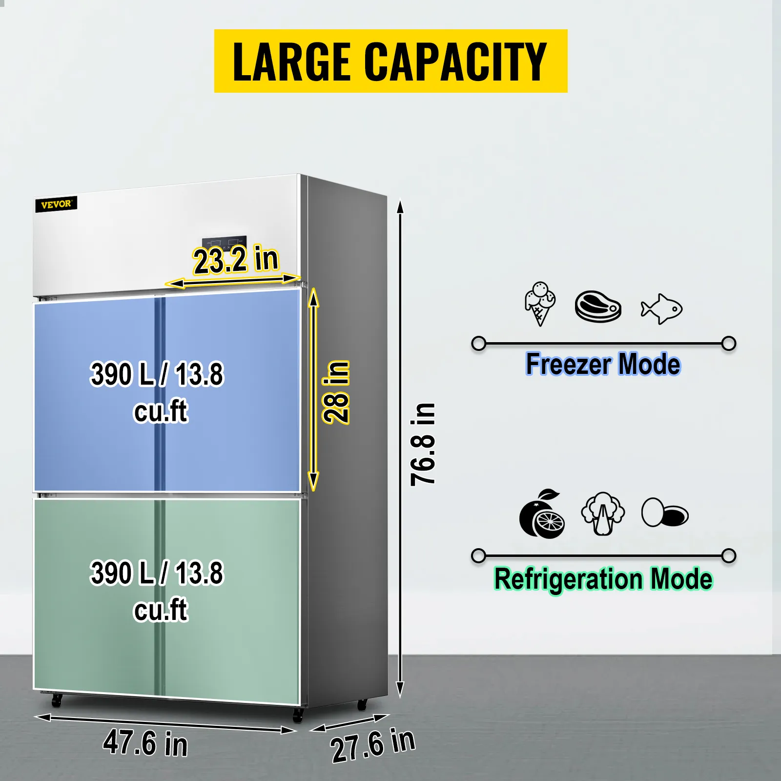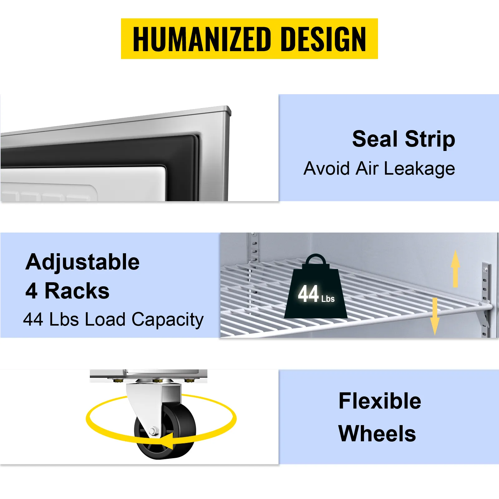 Dzięki profesjonalnej lodówce VEVOR najważniejsze artykuły spożywcze i napoje zawsze będą świeże i gotowe dla Twoich klientów. Dzięki dużej przestrzeni do przechowywania, eleganckiemu wyglądowi, oddzielnym ustawieniom temperatury, efektywnemu chłodzeniu i cichej sprężarce, nasza lodówka jest absolutnie właściwym wyborem dla Twojej firmy. VEVOR, oferujemy Ci rozwiązanie.