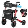 VEVOR 3-kierunkowy składany chodzik z siedziskiem, lekki 4-kołowy chodzik, pomoc w chodzeniu dla osób o wadze do 136 kg z oparciem, torbą i uchwytem na laskę, pomoc w chodzeniu z regulacją wysokości i funkcją blokady dla seniorów, kolor czerwony