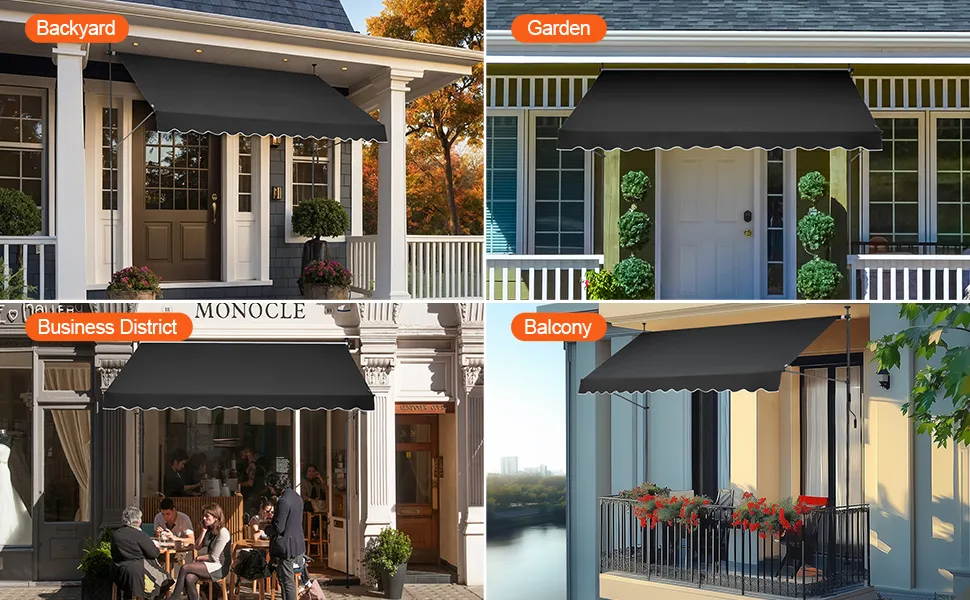 Wszechstronne zastosowanie: Idealne do ogrodów, balkonów i tarasów, markizy te zapewniają stylową ochronę przed słońcem i komfort, przekształcając Twoją przestrzeń na świeżym powietrzu w oazę relaksu.