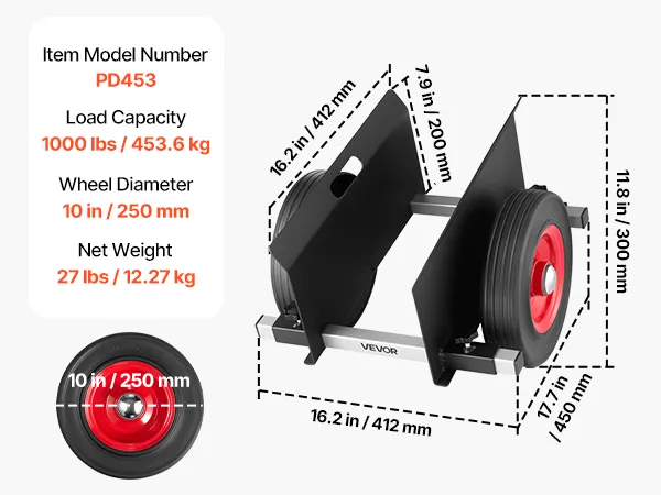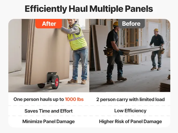 Wytrzymały: Ten wózek panelowy ma wymiary 412 x 450 x 300 mm i waży 12,27 kg. Udźwig do 453,6 kg pozwala jednej osobie z łatwością przenosić płyty gipsowo-kartonowe, sklejkę, kamień lub szkło.