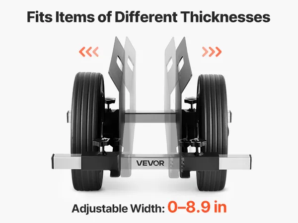 Regulowana szerokość: Możesz obracać boczne pokrętła wózka panelowego, aby regulować szyny w zakresie od 0 do 225 mm, co ułatwia transport wielu paneli lub dużych mebli, takich jak materace, przy mniejszym wysiłku i większej stabilności