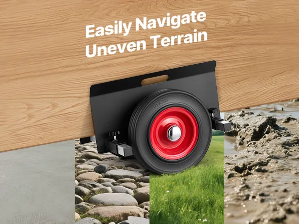 Wyposażony w 2 koła z pełnej gumy, które skutecznie amortyzują wstrząsy i są odporne na przebicia gwoździami lub brudem, co zapewnia długą żywotność.