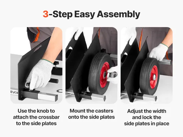 Solidna konstrukcja stalowa: Ten regulowany wózek płytowy wykonany jest z wysokowytrzymałej stali węglowej z ocynkowanymi prętami. Nie ugina się pod dużym obciążeniem i idealnie nadaje się do magazynów, fabryk i placów budowy.