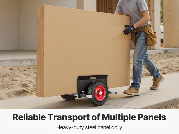 Ten wytrzymały, stalowy wózek do transportu paneli udźwignie do 453,6 kg. Umożliwia łatwe przenoszenie wielu paneli, oszczędzając pracę, zwiększając wydajność i zapewniając bezpieczny transport.