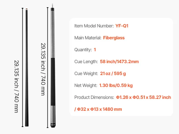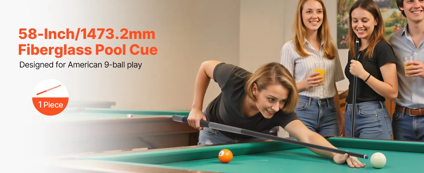 Kij bilardowy VEVOR 1 szt. (1473,2 mm / 595 g) wykonany z włókna szklanego z wielowarstwową końcówką, odpowiedni do baru, domu, biura, do gry w 9-bil, do bilarda