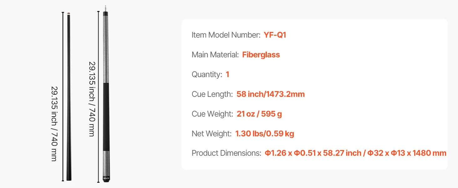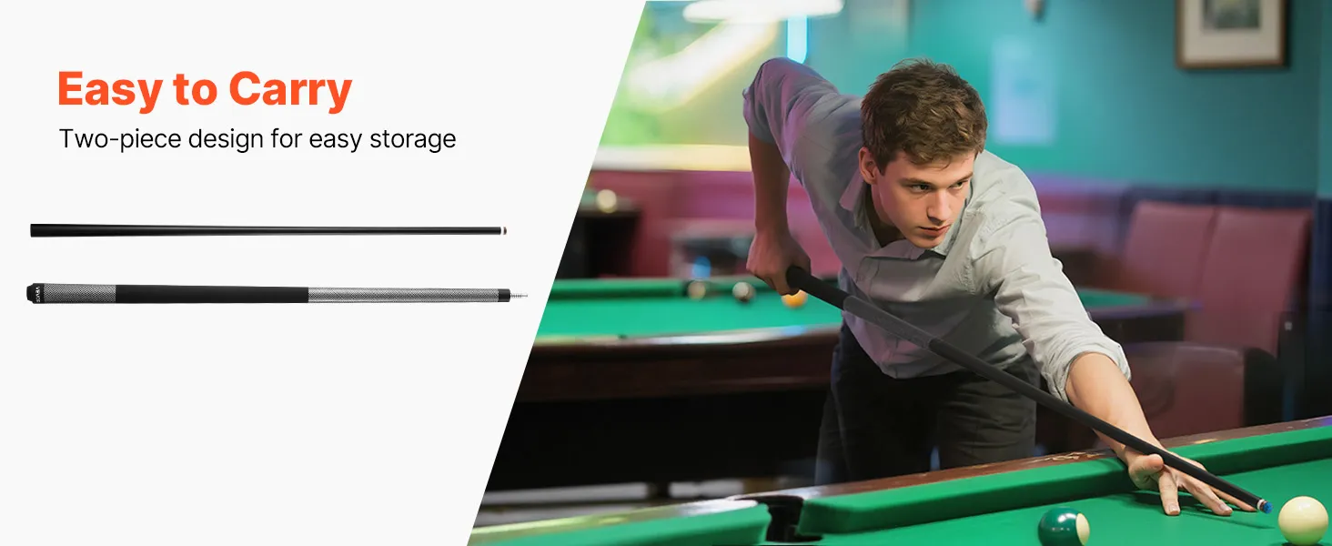 Kompaktowy i lekki: Nasz kij bilardowy to idealny wybór dla początkujących. Dzięki dwuczęściowej konstrukcji jest łatwy w przechowywaniu i transporcie. Mierzy 58 cali (1473,2 mm) długości i waży 21 uncji (595 g), zapewniając idealną równowagę początkującym graczom, którzy chcą doskonalić swoje umiejętności.