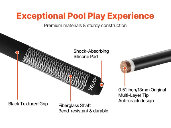 Niezależnie od tego, czy jesteś początkującym, czy profesjonalistą, nasz kij bilardowy o długości 1473,2 mm poprawi Twoją grę. Wykonany z wytrzymałego włókna szklanego, został zaprojektowany z myślą o trwałości, stabilności i precyzji, zapewniając powtarzalne, proste uderzenia bez ryzyka odkształceń spowodowanych wahaniami temperatury lub wilgotności.