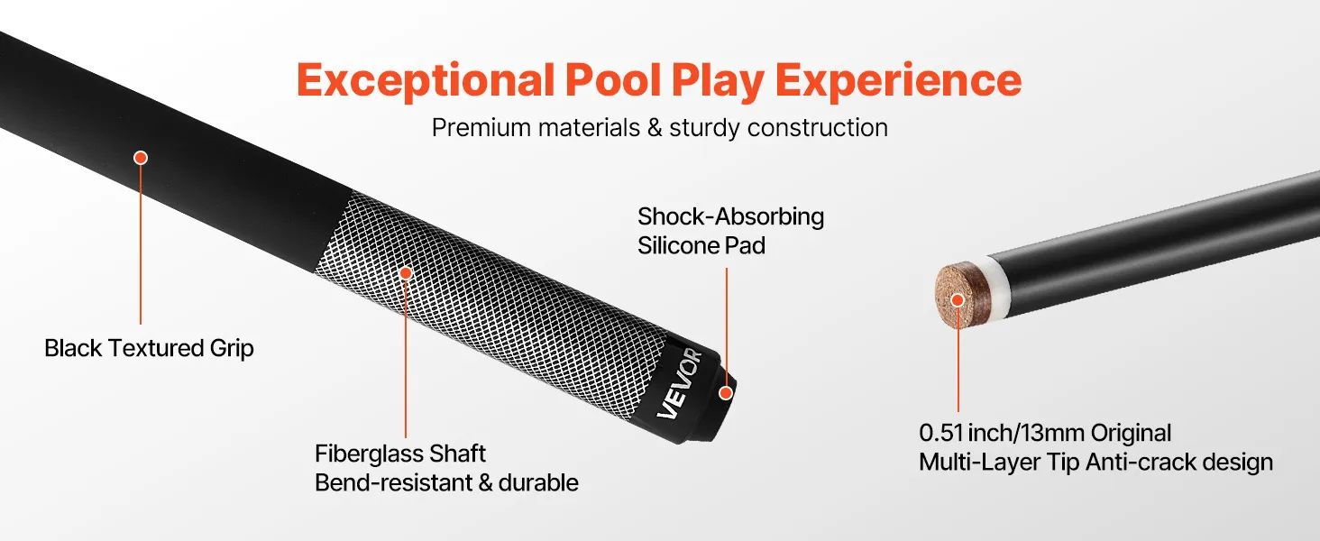 Szeroki zakres zastosowań: Dzięki eleganckiemu wzornictwu i trwałym materiałom, kij bilardowy VEVOR jest odpowiedni dla dorosłych. Idealnie nadaje się do profesjonalnych stołów bilardowych, barów, domowych sal gier i korporacyjnych przestrzeni rozrywkowych, oferując zarówno funkcjonalność, jak i styl.