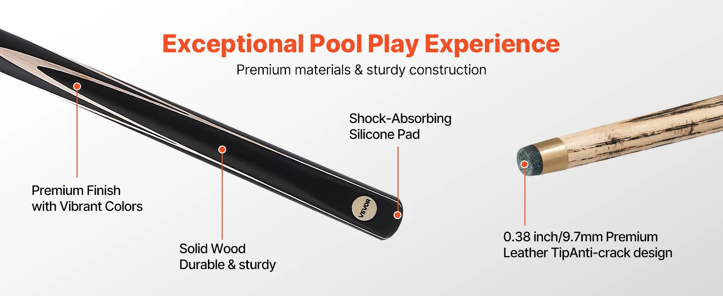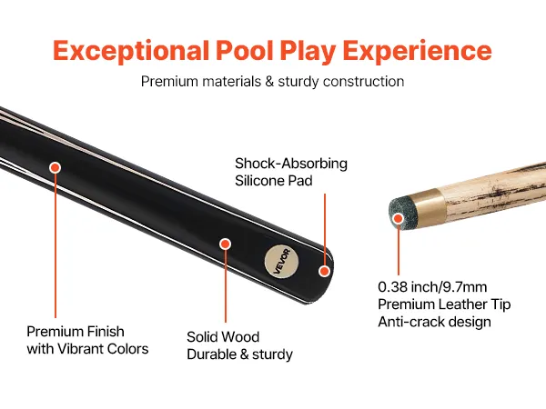 Solidne wykonanie z drewna: Ten kij snookerowy, wykonany z wysokiej jakości białego woskowanego drewna i hebanu, łączy styl z wytrzymałością. Matowe wykończenie nadaje mu polerowany wygląd, a wygodny uchwyt i silikonowa podstawa zapobiegają uszkodzeniom kija po odłożeniu na podłogę.