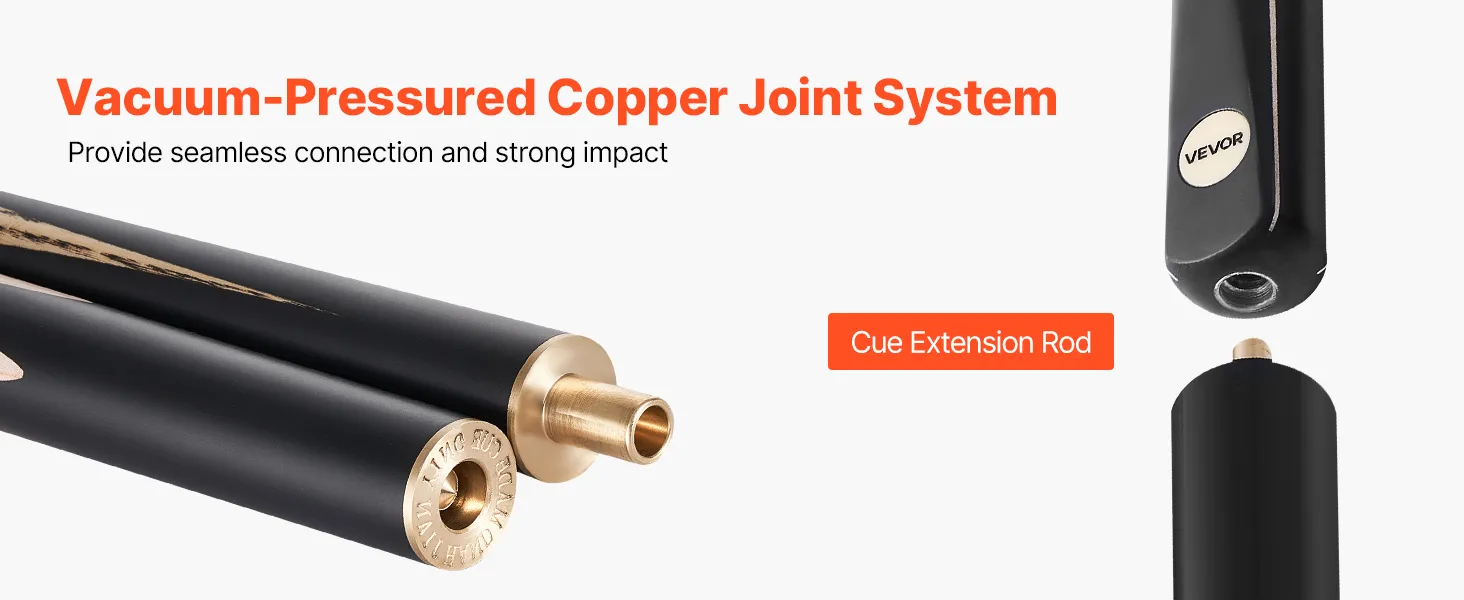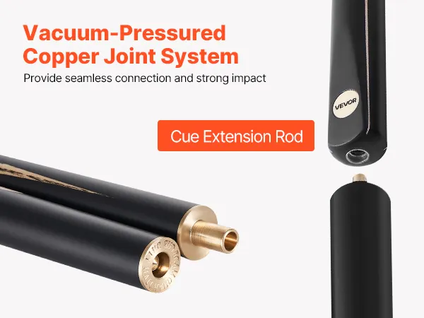 Precyzyjnie zaprojektowany, hermetyczny system miedzianych połączeń zapewnia bezproblemowe połączenie i zapobiega niepożądanemu chybotaniu. Matowe wykończenie nie tylko poprawia chwyt, zapewniając pewny chwyt, ale także gwarantuje stabilną i precyzyjną grę – idealne rozwiązanie dla snookera ceniącego precyzję.