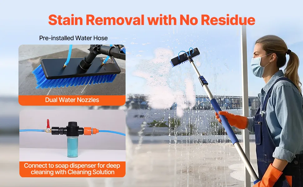 Aby uzyskać dokładniejsze czyszczenie, wystarczy podłączyć dozownik mydła, aby bez trudu uporać się z uporczywymi plamami. Ten zestaw dozowników wody idealnie nadaje się do czyszczenia błyszczących okien, paneli słonecznych i innych elementów, ułatwiając i uprzyjemniając czyszczenie.