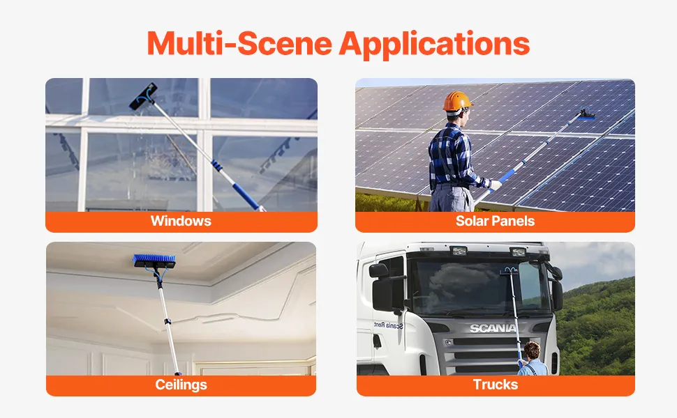 Ten wszechstronny system do mycia okien idealnie sprawdzi się w domu, ogrodzie i nie tylko. Idealny do czyszczenia paneli słonecznych, okien, sufitów, szklanych ścian, ciężarówek, billboardów i innych powierzchni.