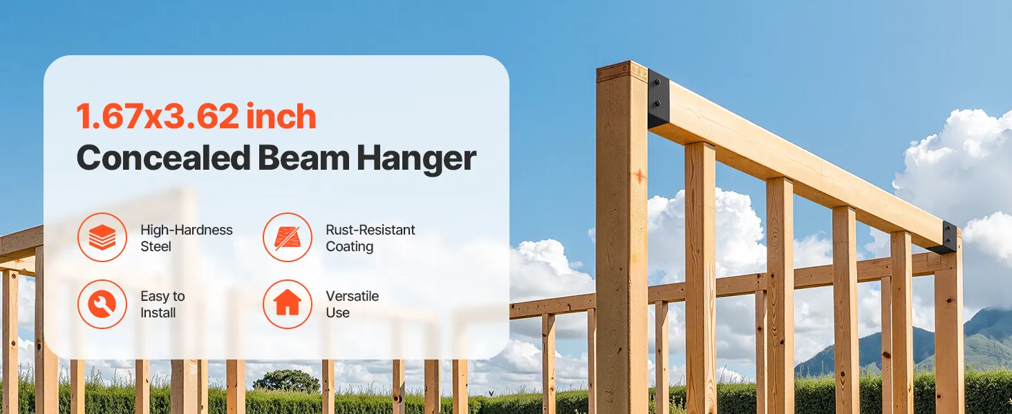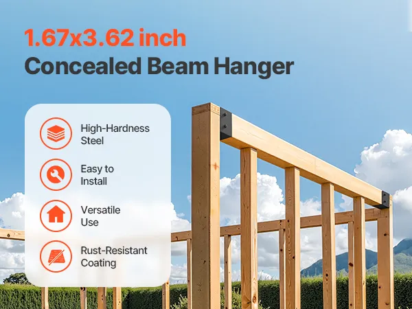 Trwały i odporny na warunki atmosferyczne: Ten ukryty wspornik belki wykonany jest z wysokowytrzymałej stali o grubości 0,2 cm z czarną powłoką antykorozyjną, zapewniającą doskonałą odporność na korozję. Jest odporny na deszcz, upały i trudne warunki atmosferyczne, zachowując długotrwałą stabilność nawet po długotrwałym narażeniu na działanie warunków atmosferycznych.