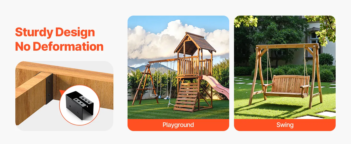 Ulepszona konstrukcja zapewnia mocne, stabilne trzymanie — niezależnie od tego, czy budujesz huśtawkę ogrodową, czy mocujesz konstrukcję do zabawy dla dzieci. Wstępnie wywiercone otwory sprawiają, że montaż jest szybki i łatwy, nawet dla początkujących majsterkowiczów.