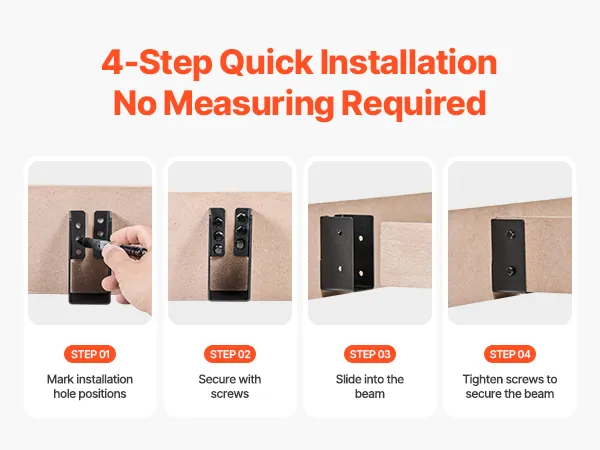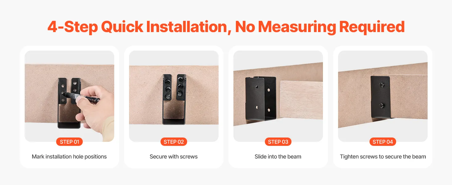 Łatwy montaż, bez spawania: Te lekkie wsporniki belek są dostarczane z 10 wstępnie nawierconymi otworami i kompletnym zestawem montażowym (w tym instrukcją, wspornikami i śrubami M6×30). Wystarczy przymocować wspornik do płyty belki, wsunąć belkę i dokręcić – bez pomiaru i spawania. Idealne dla majsterkowiczów i profesjonalistów.