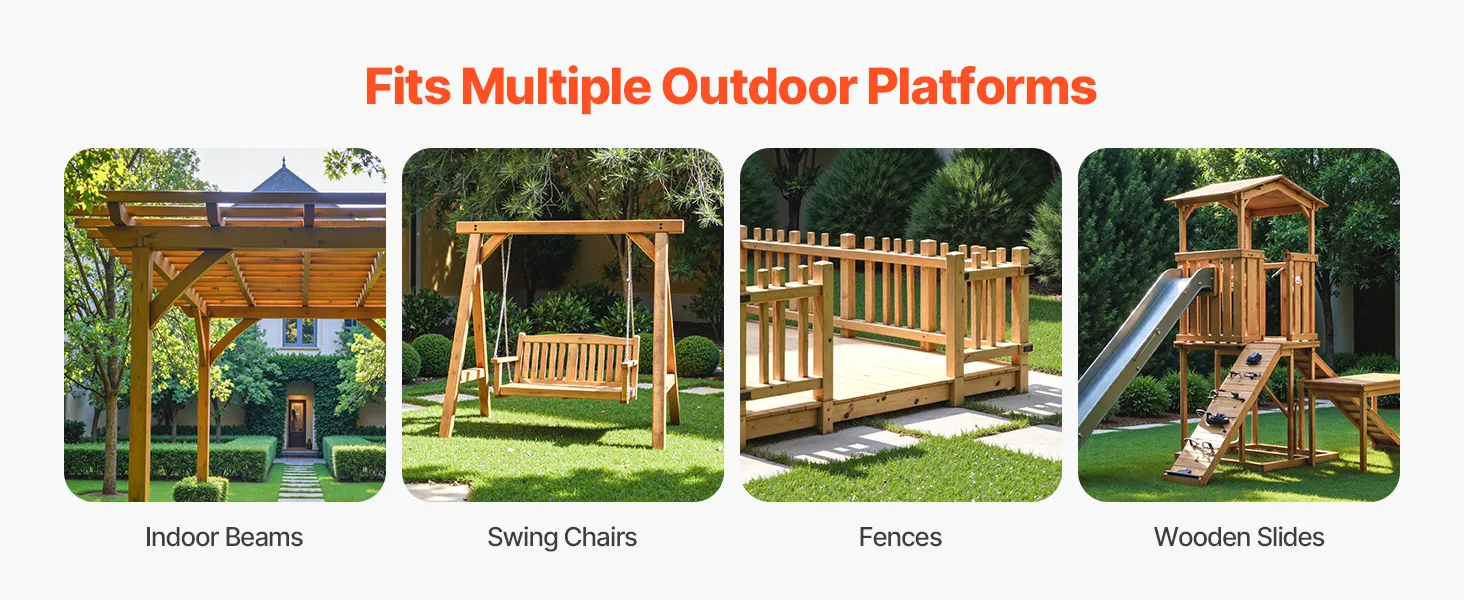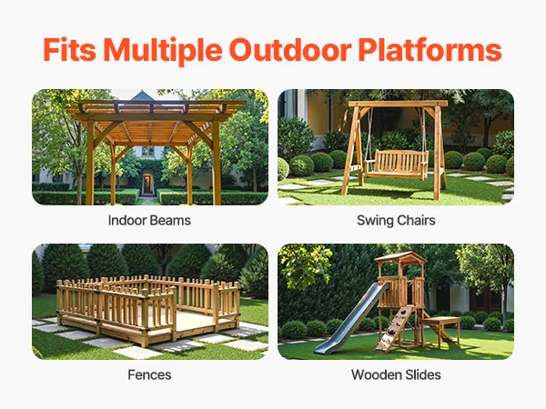 Te ukryte kołnierze pasują do różnorodnych konstrukcji wewnętrznych i zewnętrznych, takich jak belki, huśtawki, ogrodzenia i drewniane zjeżdżalnie. Niezależnie od tego, czy chodzi o wzmocnienie konstrukcji, czy o rozrywkę na świeżym powietrzu, zapewniają bezpieczne i niezawodne wsparcie.