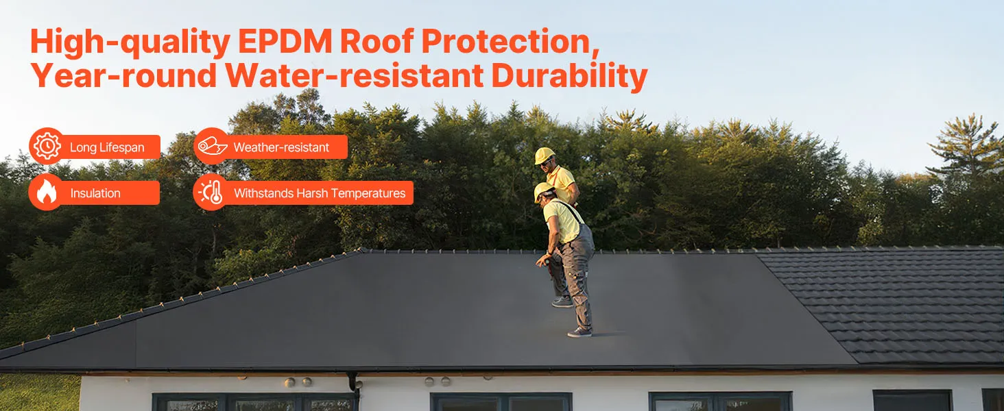 Wodoodporna i odporna na starzenie: Wykonana z wysokiej jakości gumy EPDM membrana dachowa zapewnia doskonałą wodoodporność, odporność na starzenie i właściwości izolacyjne, dzięki czemu nie odkształci się ani nie zestarzeje nawet pod wpływem światła słonecznego.