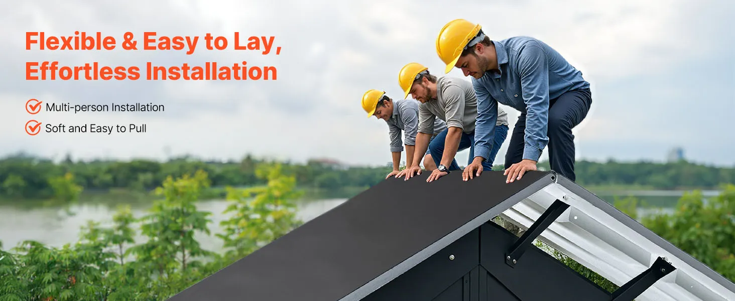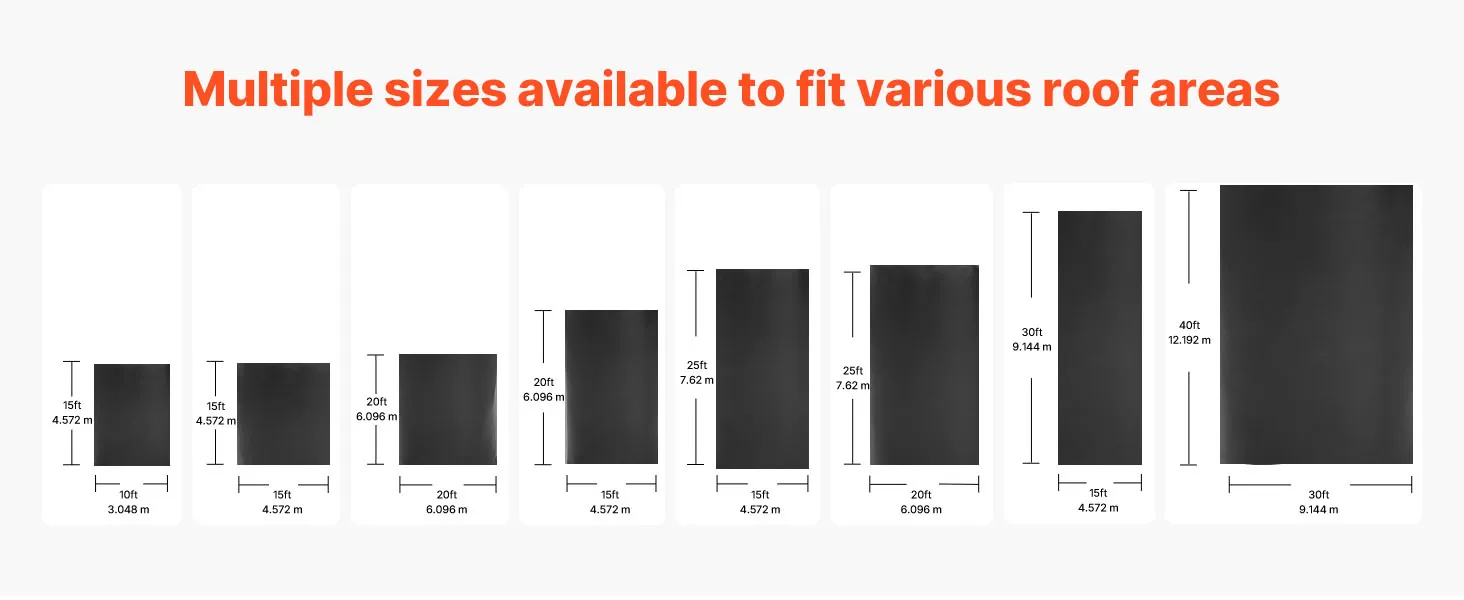 Łatwe krycie dachu: Dzięki wymiarom 15 x 25 stóp / 4,572 x 7,62 m ta membrana dachowa z łatwością pokryje dachy o różnych rozmiarach, w zależności od potrzeb