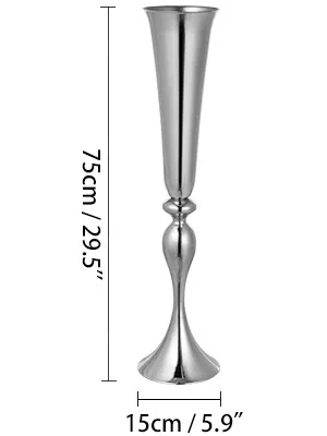 Gładki i pełen metalicznego połysku prezentujemy Ci piękną centralną dekorację. Ten wysoki wazon na kwiaty jest efektownie zaprojektowany w nowoczesnym stylu.